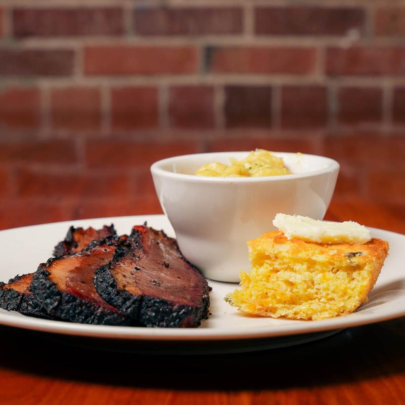 Choose your combination of meats and sides. Includes a slice of our fan-favorite jalapeño cornbread!